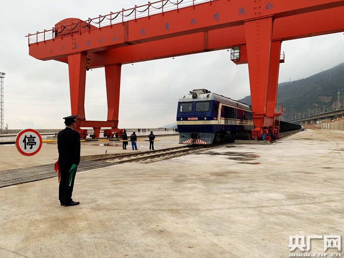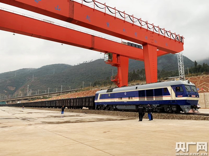 貨物列車首次開進(jìn)玉昆鋼鐵集團(tuán)鐵路專用貨場(chǎng)(央廣網(wǎng)發(fā) 石佳 攝)