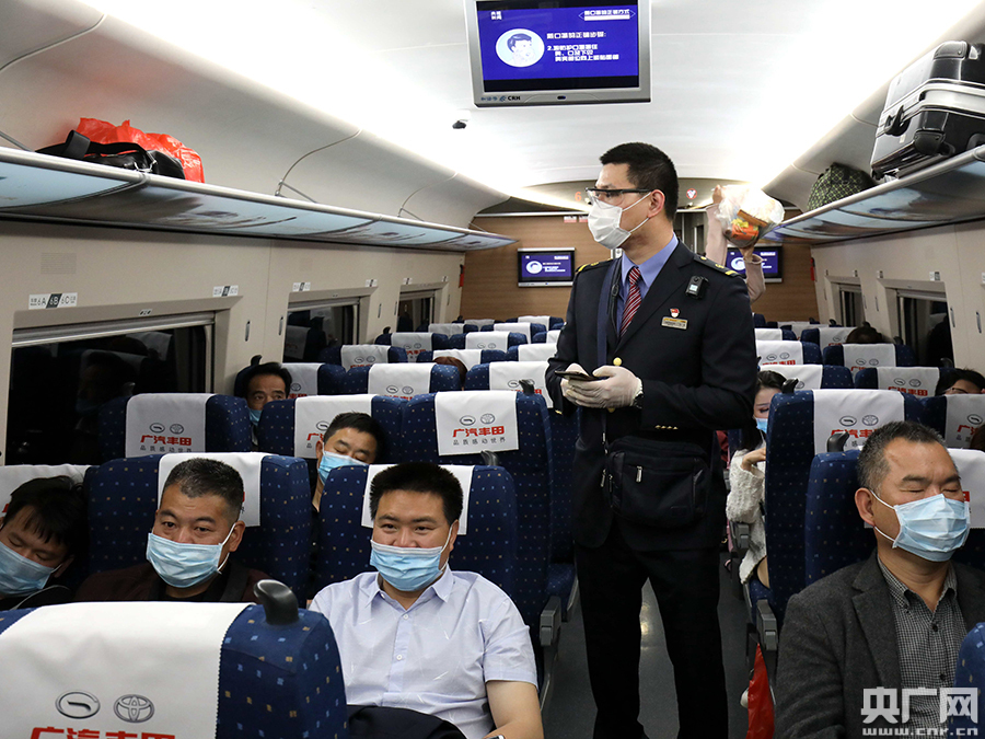 同時,乘務(wù)員及時提醒旅客戴好口罩,盡量減少走動次數(shù),并嚴(yán)格按照疫情防控要求為旅客測量體溫;保潔員增加電茶爐、洗臉間、各位置扶手等位置的擦拭消毒次數(shù),通力協(xié)作,把疫情防控工作落實到位,確保旅客的乘車安全。
