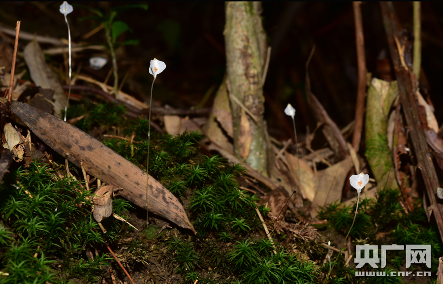云開山發(fā)現(xiàn)的水玉簪屬新種Burmannia decurrens植株體(央廣網(wǎng)發(fā) 廣東省林業(yè)局供圖)