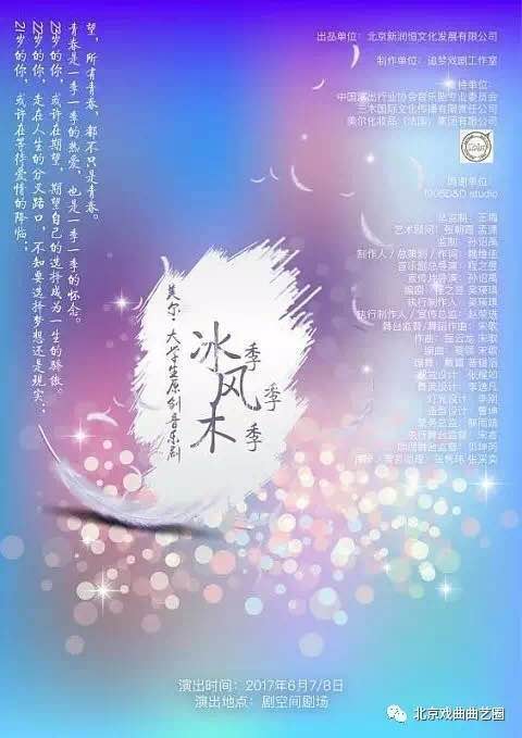 央廣網(wǎng)北京6月2日消息(張瑜瑜)6月7日至8日,由北京舞蹈學(xué)院大學(xué)生原創(chuàng)的音樂劇《冰季.風(fēng)季.木季》將在劇空間劇場上演。這是由北舞追夢戲劇團隊傾力打造的第一部原創(chuàng)作品,由北京新潤恒文化發(fā)展有限公司出品。