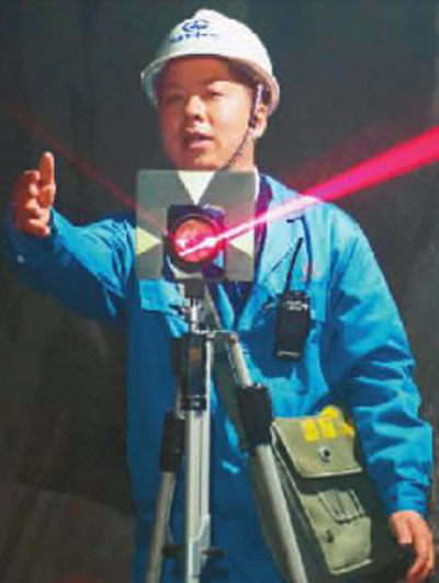 白芝勇在陜西省韓城市龍門(mén)鎮(zhèn)蒙華鐵路集義隧道進(jìn)行施工測(cè)量。新華社發(fā)