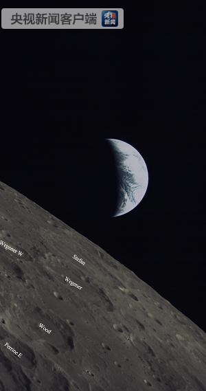 。〝z于2018年6月8日13時29分,拍攝到的月面影像位于月球背面北半球彼得羅帕夫洛夫斯基M環(huán)形坑附近。從拍攝到的地球圖像上可以清晰地分辨出波斯灣、紅海、地中海和阿拉伯半島等區(qū)域)