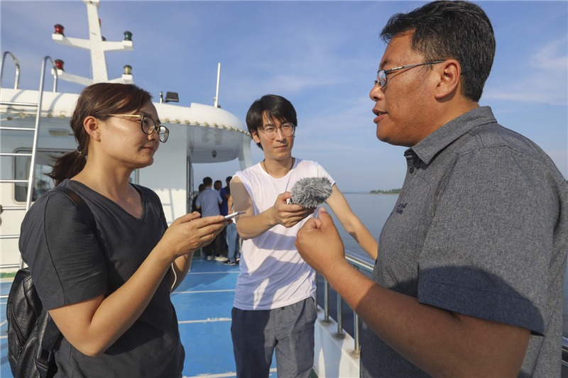 在中俄界江的游輪上,張仙峰副縣長為我們介紹了當(dāng)?shù)孛癖娕c俄羅斯民眾的互動情況,他說:“我們每年的七夕都會舉行‘中俄集體婚禮’,邀請幾十對中國的與俄羅斯的新人,就在這游輪上,舉辦中式婚禮,俄羅斯的新人對我們中國人熱鬧喜慶又莊重的傳統(tǒng)婚禮感到很新鮮,也很喜歡,不像西方的教堂婚禮,這里大家可以一起熱鬧;另外,我們與俄羅斯也展開很多體育項目上的交流互動,像今天晚上,就有俄羅斯的乒乓球隊來和我們比賽。”