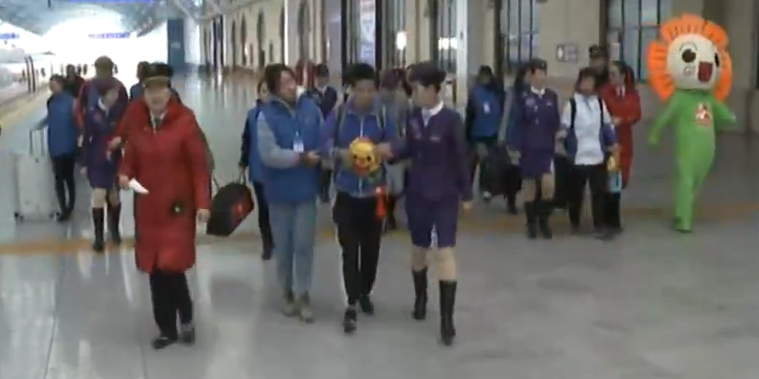 央視網(wǎng)消息:春運(yùn)來臨,不少大中院校的學(xué)生已經(jīng)開始離;丶,10日,山東青島盲校的10名學(xué)生,通過鐵路部門為他們開通的綠色通道,踏上返鄉(xiāng)的列車。