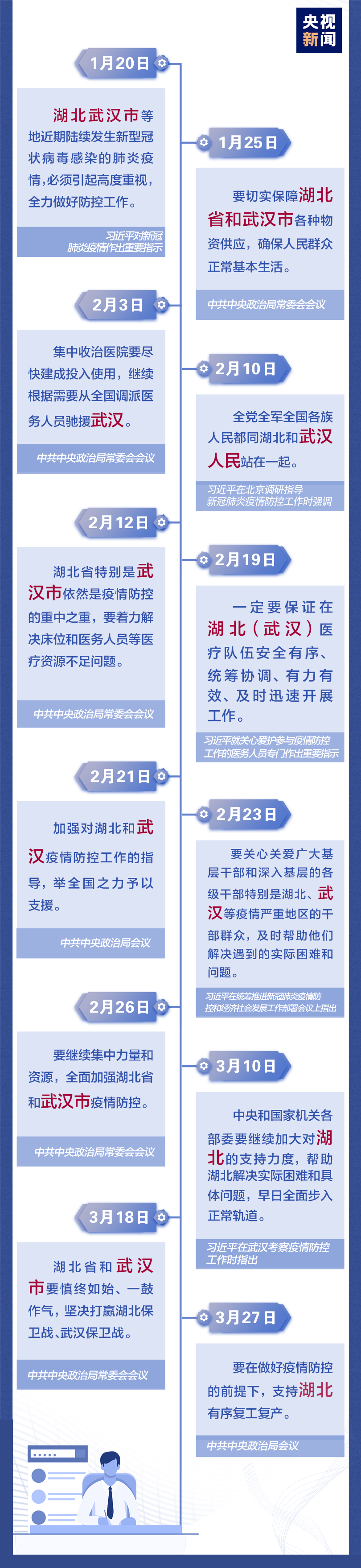 在中央政治局會議、統(tǒng)籌推進新冠肺炎疫情防控和經(jīng)濟社會發(fā)展工作部署會議上,習近平多次對武漢疫情防控工作細致部署,就不同防控形勢精準施策。一系列戰(zhàn)“疫”舉措圍繞武漢的現(xiàn)實需求密切展開,層層深入、步步推進。