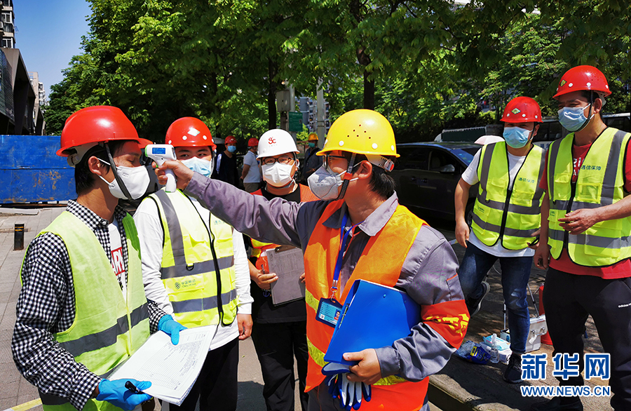 8日,在武漢市春雷建材市場(chǎng)附近的一處5G基站施工現(xiàn)場(chǎng),工人們經(jīng)過(guò)掃碼、測(cè)溫和全身消毒后進(jìn)入現(xiàn)場(chǎng)開(kāi)始施工!啊逡弧¢L(zhǎng)假期間,我們都一直在施工!焙币苿(dòng)公司武漢江岸區(qū)建維中心5G項(xiàng)目經(jīng)理付毅說(shuō)。為了減少人員聚集、抓好疫情防控和安全規(guī)范,施工現(xiàn)場(chǎng)還部署了“云監(jiān)控”視頻系統(tǒng)。“從施工人員開(kāi)始準(zhǔn)備,一直到整個(gè)站點(diǎn)完工,全程進(jìn)行云上傳。后臺(tái)隨時(shí)監(jiān)控施工中有沒(méi)有違規(guī)操作,有沒(méi)有風(fēng)險(xiǎn)防范意識(shí)不達(dá)標(biāo)等行為!