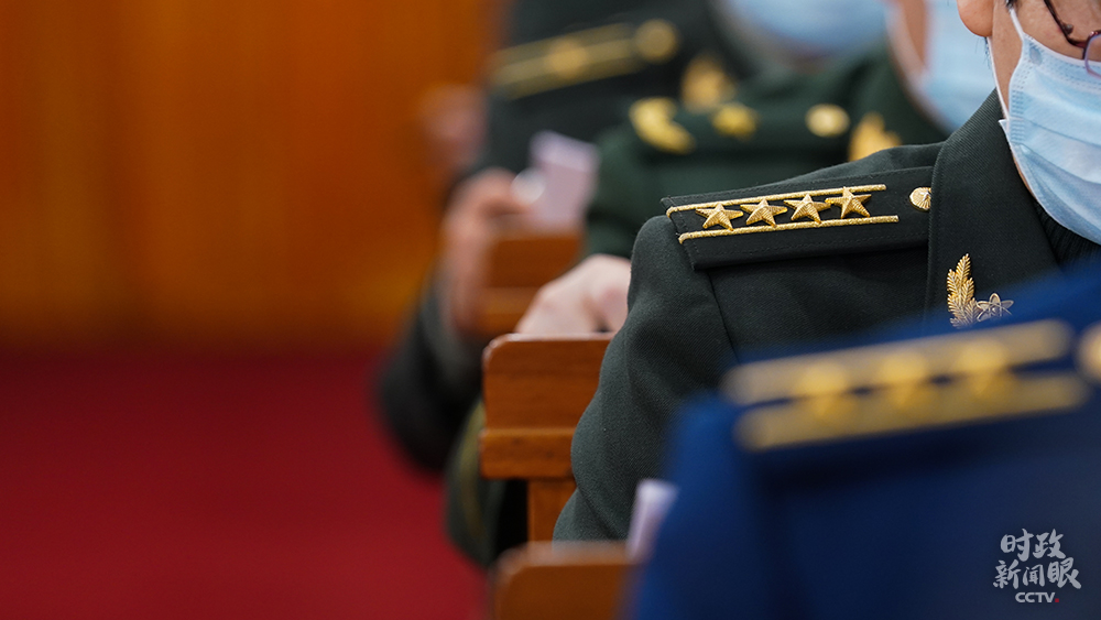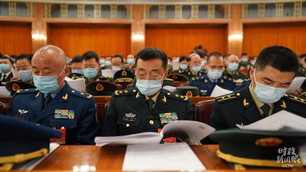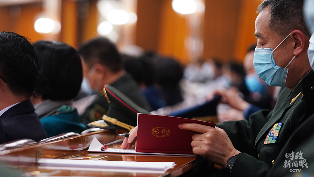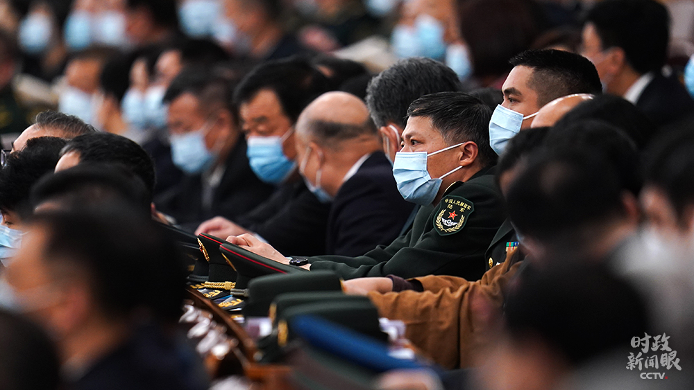 △十三屆全國人大四次會議第二次全體會議現(xiàn)場的解放軍代表(總臺國廣記者李晉拍攝)