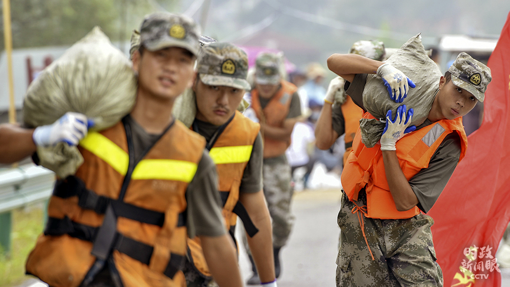 △2020年7月底,巢湖流域進入緊急防汛期。中國人民解放軍73021部隊鐵騎先鋒營430名指戰(zhàn)員奔赴一線,扛沙袋加固巢湖大堤。