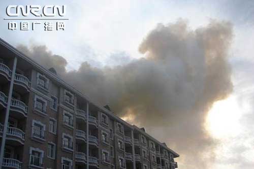 到達(dá)新開街后,消防官兵發(fā)現(xiàn)陣陣黑煙在上空冒起,在知情人的引導(dǎo)下,消防官兵迅速到達(dá)著火樓房,發(fā)現(xiàn)著火部位是一棟在建六層樓房的悶頂處,上面火焰夾帶著黑煙不時向外冒出。樓層四周站滿了正在施工的建筑工人。