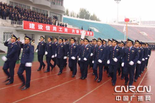 中廣網(wǎng)呼和浩特10月22日消息(記者那森寶音、通訊員李健、中文) 2008年10月21日在大馬路體育場(chǎng),呼和浩特市工商系統(tǒng)800多名干部精神抖擻,意氣盎然,邁著整齊的步伐接受有關(guān)部門的檢閱,展現(xiàn)了首府工商的精神風(fēng)貌和良好形象。