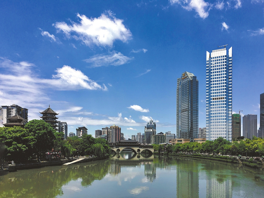 5月3日,成都市民的朋友圈又被藍(lán)天刷屏了,不少成都市民感慨,“隨手一拍都是桌面”。譚曦 攝