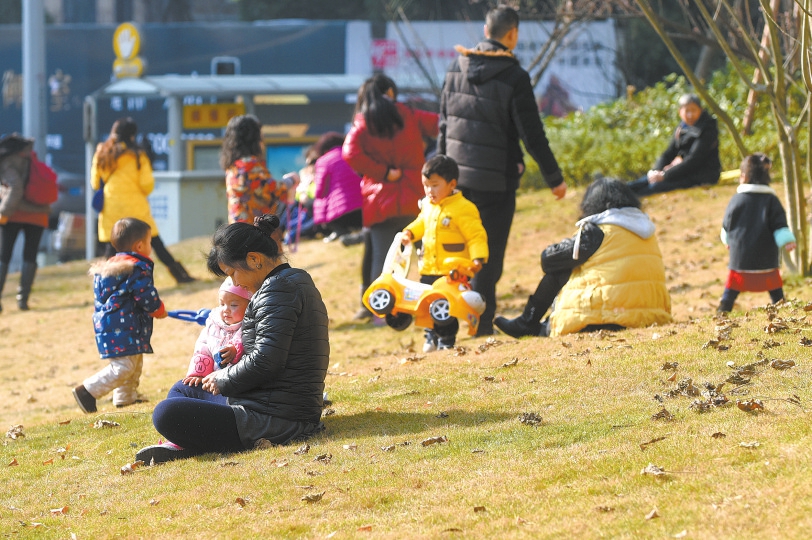 1月12日,成都又見藍(lán)天,太陽出來暖洋洋,市民忙曬太陽。