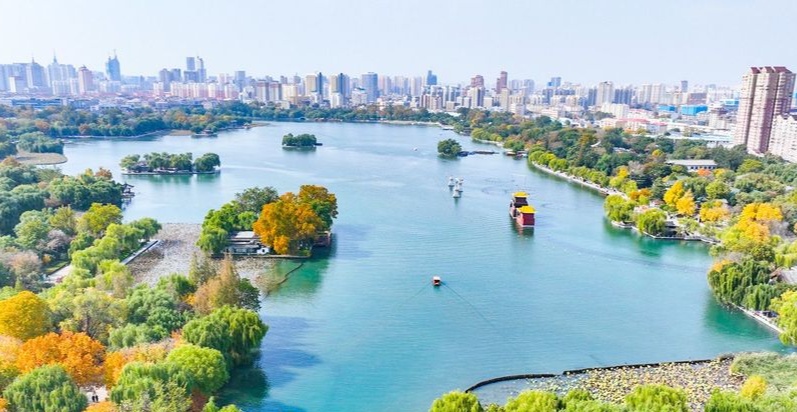 深秋濟(jì)南大明湖彩葉交織 繪就泉城絕美勝景