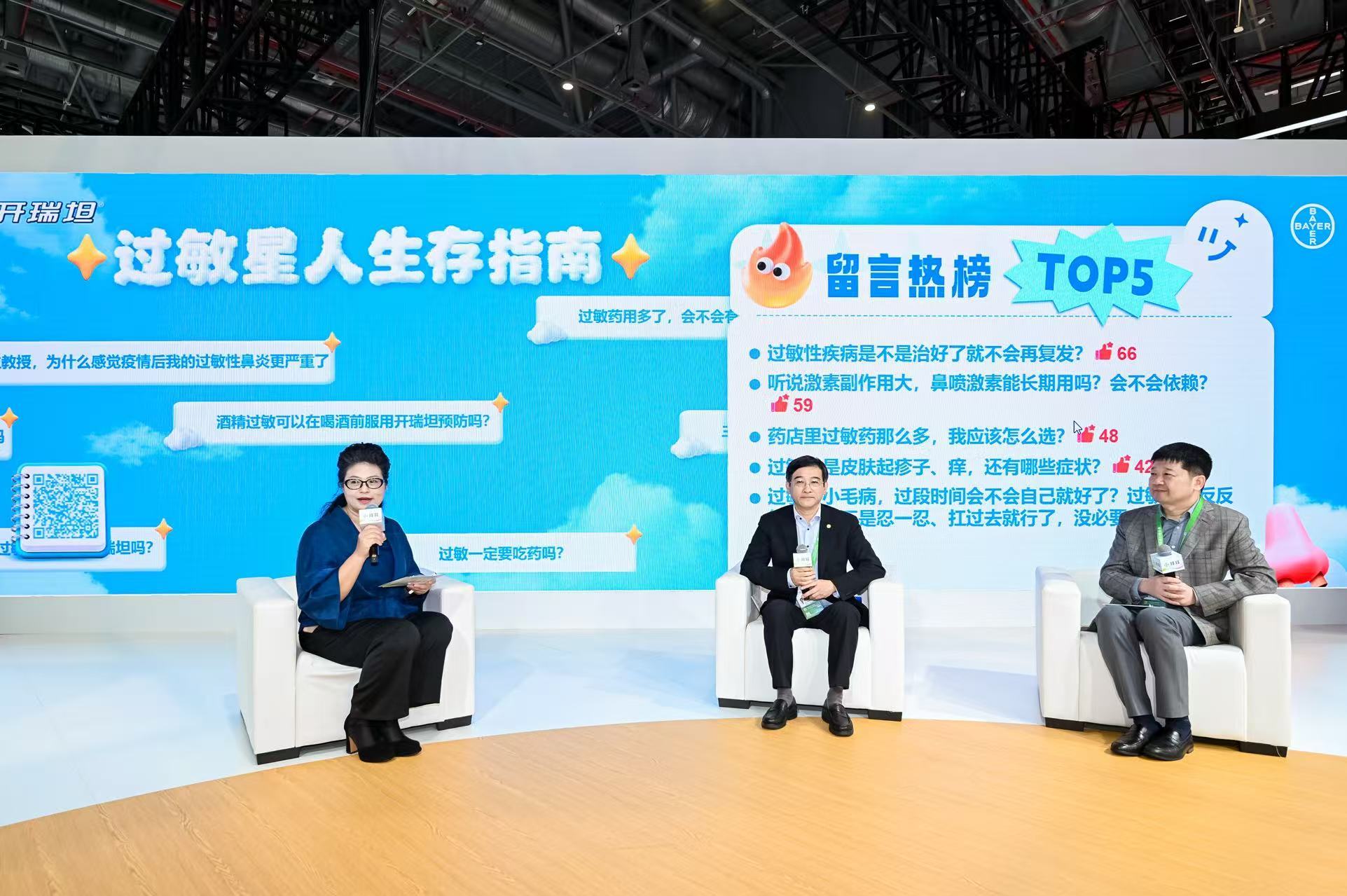 在第八屆中國國際進口博覽會這一全球矚目的開放平臺上,拜耳特別邀請過敏性疾病領(lǐng)域頂尖權(quán)威專家——中華醫(yī)學(xué)會變態(tài)反應(yīng)學(xué)分會主任委員、南京醫(yī)科大學(xué)第一附屬醫(yī)院/江蘇省人民醫(yī)院變態(tài)反應(yīng)(過敏)科主任程雷教授,國家免疫學(xué)(含變態(tài)反應(yīng))專業(yè)醫(yī)療質(zhì)量控制中心副主任、中國醫(yī)學(xué)科學(xué)院北京協(xié)和醫(yī)院變態(tài)(過敏)反應(yīng)科主任關(guān)凱教授開展“過敏星人生存指南”專題直播,兩位權(quán)威專家圍繞“過敏性疾病流行現(xiàn)狀、診療誤區(qū)、患者科普教育、過敏中心建設(shè)”等話題展開分享,深入淺出地從利國利民的學(xué)術(shù)視角帶來專業(yè)洞見。