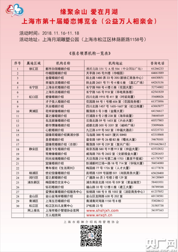 圖:第十屆上海市婚戀博覽會(huì)報(bào)名機(jī)構(gòu)一覽表。(央廣網(wǎng)發(fā) 上海市婚戀博覽會(huì)組委會(huì) 供圖)