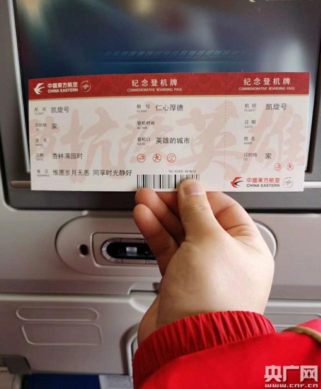 上海市紅十字應(yīng)急救援隊(duì)隊(duì)員“特別”機(jī)票(央廣網(wǎng)發(fā) 上海紅十字會(huì)提供)