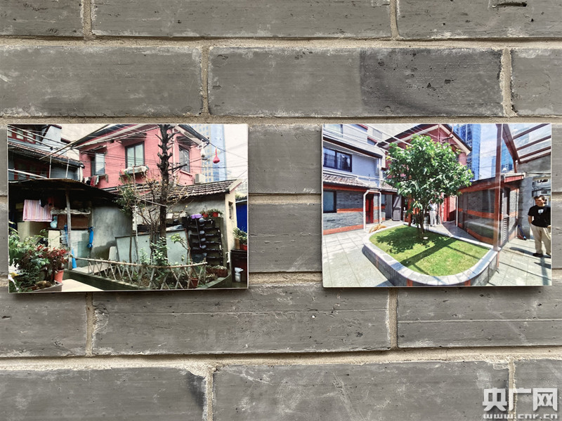 黃浦區(qū)南京東路街道江陰路72號(hào)內(nèi)展示著“微更新”前后的對(duì)照(央廣網(wǎng)記者唐奇云 攝)