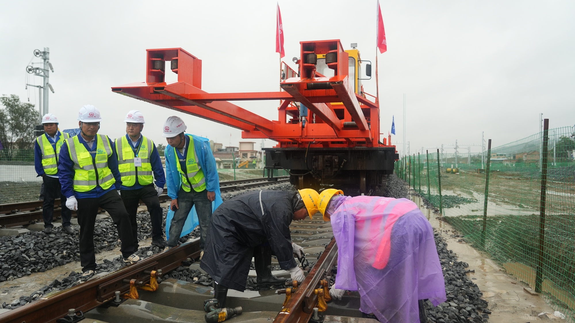 10月11日,陜西西安灞橋區(qū)的西康高鐵鋪軌基地內(nèi),我國(guó)自主研發(fā)的新型多功能長(zhǎng)鋼軌牽引車(chē)徐徐前進(jìn),將首對(duì)500米長(zhǎng)的鋼軌精準(zhǔn)平穩(wěn)地鋪設(shè)在無(wú)砟道床上。