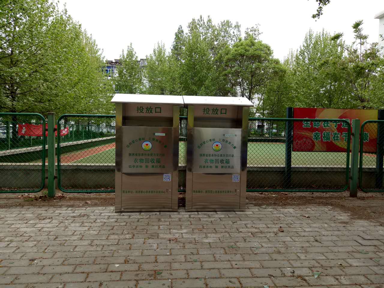 最近,在西安市一些機關(guān)單位、學(xué)校、社區(qū)內(nèi)以及街道路邊陸續(xù)出現(xiàn)了“舊衣物回收箱”。這些“舊衣物回收箱”約一米多高,形似“小房子”,箱體上大多會寫有“公益”字樣,有的“舊衣物回收箱”的箱體上還會附簡短文字和圖片介紹回收項目內(nèi)容,貼著收集舊物的類型,箱體投放單位的名稱,收運電話等信息。只要拉開箱體上方的蓋子,將舊衣物投入其中即可。