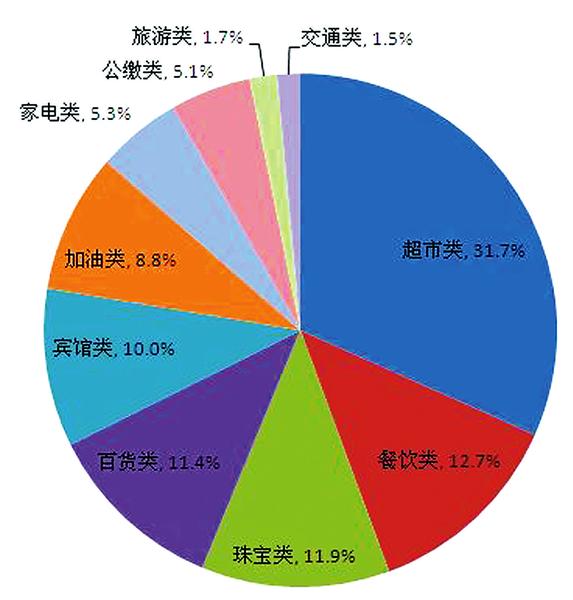 受中秋、國慶雙節(jié)影響,9月全省百貨、超市類商戶銀聯(lián)卡交易規(guī)模增長迅速。其中百貨類商戶銀聯(lián)卡交易金額環(huán)比增長12.9%,超市類商戶銀聯(lián)卡交易金額環(huán)比增長11.9%。全省旅游類商戶也迎來年內(nèi)消費高潮,9月全省旅游類商戶銀聯(lián)卡交易筆數(shù)、金額同比分別增長24.6%和21.1%。交通運輸類、賓館酒店類商戶交易規(guī)模也保持高速增長,其中交通運輸類商戶銀聯(lián)卡交易筆數(shù)、金額同比分別增長21.5%和22.1%,賓館酒店類商戶銀聯(lián)卡交易筆數(shù)、金額同比分別增長26.7%和25.2%。