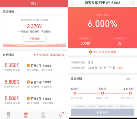 面對未來可能上漲的打車費(fèi),不少小伙伴都給自己立了努力工作、升職加薪的flag。在這里要為大家介紹除了辛苦工作外,還有一種可以讓你“癱著、躺著都賺錢”的方式——理財。小伙伴們可以在百度錢包上選擇理財服務(wù),包括1元起投、隨存隨取的活期理財;平均預(yù)期年化收益在5.0%以上的優(yōu)質(zhì)定期理財;還有精選配置的基金投資。這種省時省力且自由靈活的賺錢方式,用了就真的可以說是不愁每日的打車費(fèi)啦,近期更是上線了預(yù)期年化收益率達(dá)6%的“新客專享·百安1月”定期理財,心動不如行動,小伙伴們趕快搶購啊!