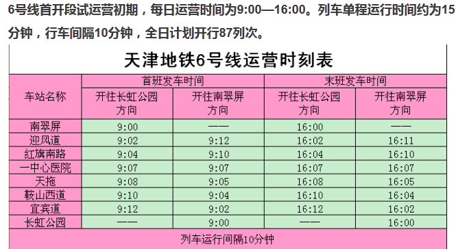 6號(hào)線首開段車站發(fā)車時(shí)間