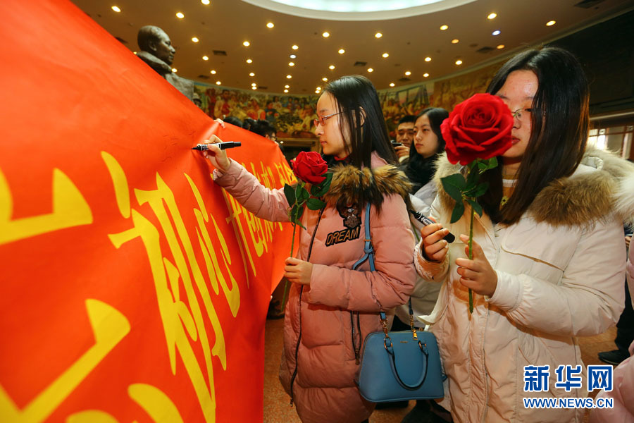 1月14日,眾多大學(xué)生參與活動(dòng),并在橫幅上簽名。新華網(wǎng)發(fā)(劉東岳 攝)